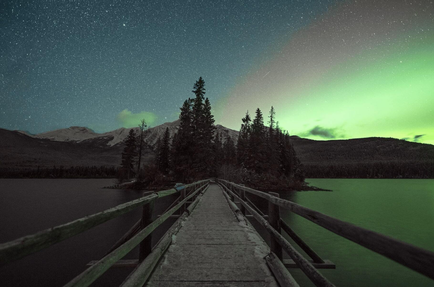 Jasper National Park is één van de grootste Dark Sky Preserves ter wereld – een beschermd gebied waar lichtvervuiling tot een minimum beperkt wordt, zodat je de nachtelijke hemel in haar volle glorie kunt ervaren.